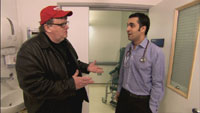 パルムドール監督マイケル・ムーアは、特別招待枠(ノン・コンペ)で「シッコ」を出品した。アメリカには皆保険制度は存在せず、多くの低所得者層の健康をオビヤ脅かしている。1994年には、クリントン大統領夫人、ヒラリー・クリントンが国民皆保険の創設を提案したが、民主党内のコンセンサスが得られず、しかも、財源問題も絡み、未だに制度は実現していない。この制度から、キューバのグアンタナモ米軍基地(アルカイダ捕虜収容刑務所)へと話が飛び、意外な展開を見せる。9・11事件で災害救助を行った人々の中には肺疾患患者が多く出たが、保険救済対象外となったこと、同じ薬がアメリカでは120ドルキューバでは5セント、適用外事項だらけの民間医療保険の支払い状況、世界各国との医療保険の比較と、話がどんどん膨らみ、健康問題の矛盾が語られる。ムーア監督独特のユーモア感覚で、深刻な問題が判り易く呈示される。