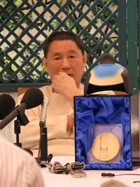 全員が壇上に並び、それぞれが質問を受け答える形式で進行。日本の北野武監督は、言葉が出来ないため、人の後を歩く感じ。ヴェネチア映画祭で「花火」での金獅子賞を決めたジェーン・カンピオン委員長の横に座る。北野監督自身も親近感を感じている様子。記者の質問に答え、「3分も2時間も、作る方としては同じ労力。最初に見た映画はピエトロ・ジェルミ監督の『鉄道員』〔56〕。この時、兄と一緒で、帰りにチンピラに脅かされ、『鉄道員』を思い出す度に落ち込む」と抜け目なく笑いをとった。多くの監督たちは英語が堪能で、彼ら同士壇上でも話していた。北野監督は、唯1人、英語通訳同行で、この日本人通訳が極めて優秀であった。